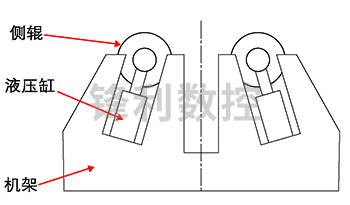 l 卷製大錐角時(shí)工作輥(下輥和(hé)側輥)的傾斜示意圖